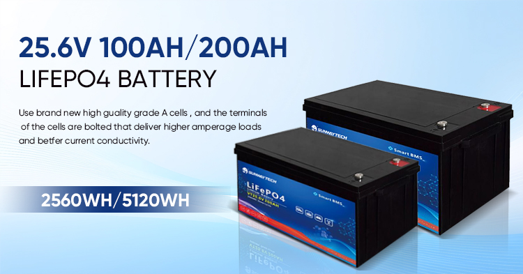 The SUNWAY 25.6V LiFePO4 series offers 2.56kWh and 5.12kWh storage capacities. You choose between 100Ah and 200Ah models. The cells sit inside a compact ABS plastic case.